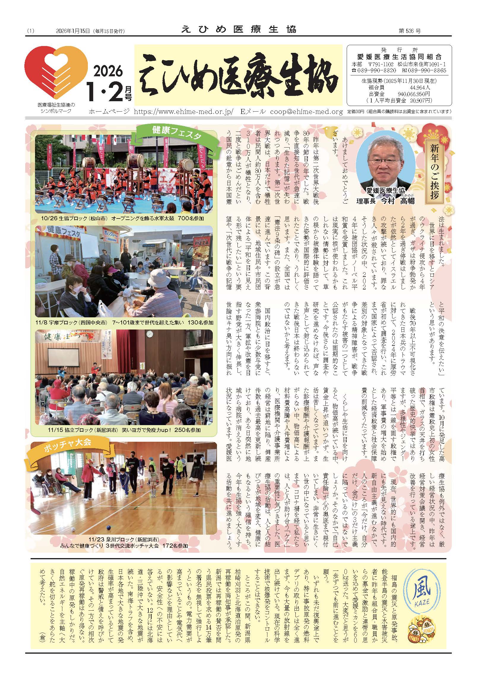 愛媛医療生協(しんぶん) Top 愛媛医療生協(しんぶん) 2026.01.15 トップニュース 新年のご挨拶 < 前の記事へ 一覧へ戻る > 活動に参加するには 皆で楽しく、健康・医療・くらしについて考え、語り、活動しましょう! 詳細はこちら 詳細へ 加入するには 詳細はこちら 詳細へ